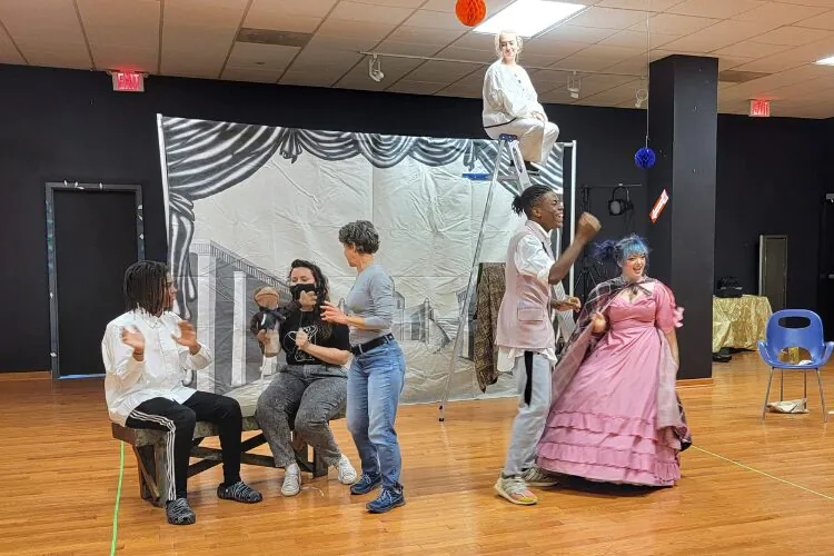 In 2024, we had our largest and most ambitious production yet. Four elementary schoolers joined the cast in children’s roles alongside our high school actors, giving us new opportunities to deepen the production. We also commissioned a new set of ghostly masks from master artisan Newman, which are used by Jacob Marley and the flying spirits who haunt Scrooge.
