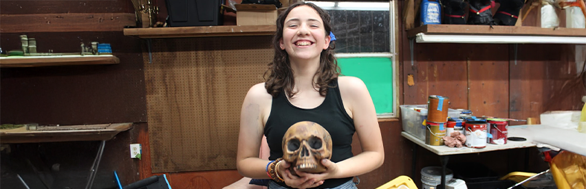 Tech Apprentices explore and gain foundational knowledge in both the costume and scene shop. Then they will choose an area in which to build new skills-either costumes (construction, alterations, and dyeing) or scene shop (props, puppets, and scenic painting). Tech Apprentices will operate as stage crews during tech week and performances for Ensemble Festivals. Their experiences preparing for and supporting live performances teaches: resiliency, ingenuity, and collaboration-skills for both theatre and life.